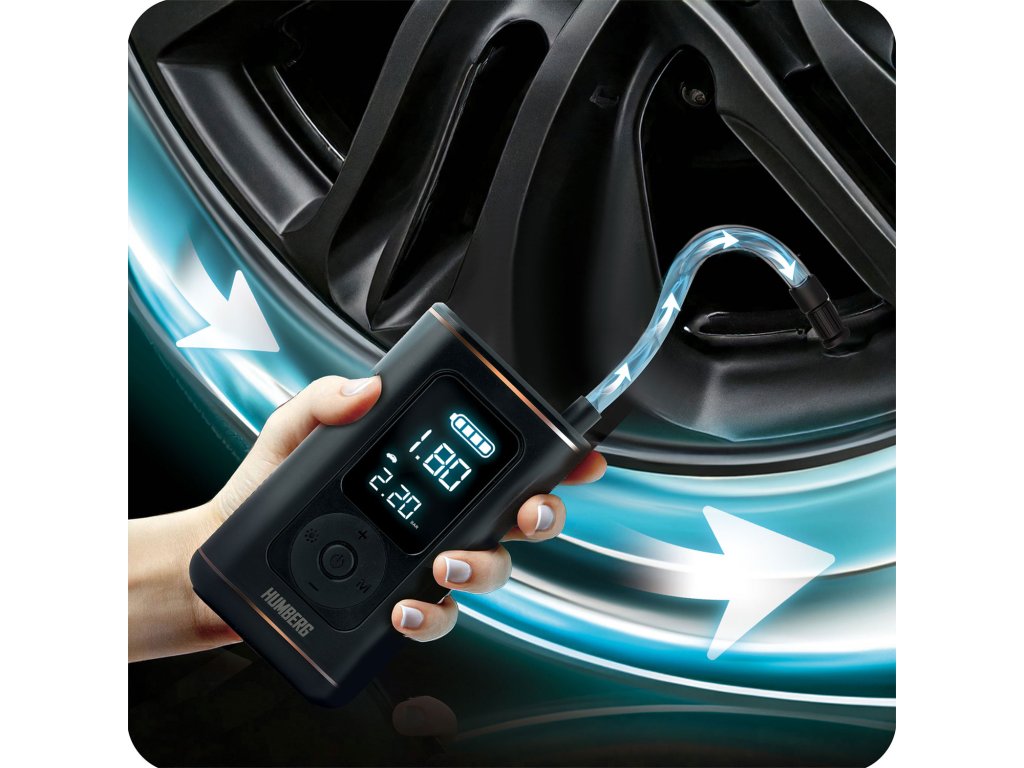 - Prijenosan, bežičan i jednostavan za rukovanje – idealan za svakodnevnu uporabu, na putu i u garaži. Osim toga, ugrađena baterijska svjetiljka će se pokazati korisnom i u hitnim situacijama nakon mraka.
