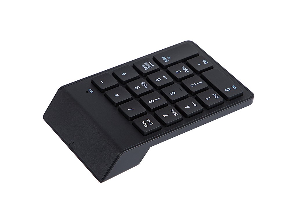 Bežična USB numerička tipkovnica. Savršeni dodatak za nepotpune tipkovnice tableta i prijenosnih računala s dodatnom numeričkom tipkovnicom. Alat je vrlo jednostavan za korištenje i ne zahtijeva dodatnu konfiguraciju. Dovoljno je priključiti USB adapter u bilo koji USB port na vašem računalu i povezati se s tipkovnicom putem Bluetootha. Velike i udobne tipke s blagim hodom jamče brz i udoban rad.