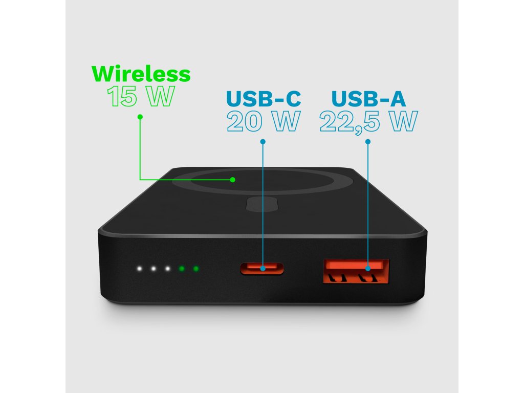 Dovoljno je nekoliko trenutaka da ponovno budete u kontaktu sa svijetom. Zahvaljujući izlaznoj snazi do 20 W i kompatibilnosti s mnogim standardima napona, vaši će se uređaji puniti znatno brže nego pri korištenju standardnih power banka.