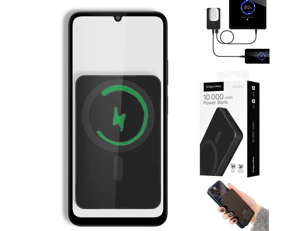 Bežična powerbanka Kruger&Matz 10000 mAh Mag Safe crna