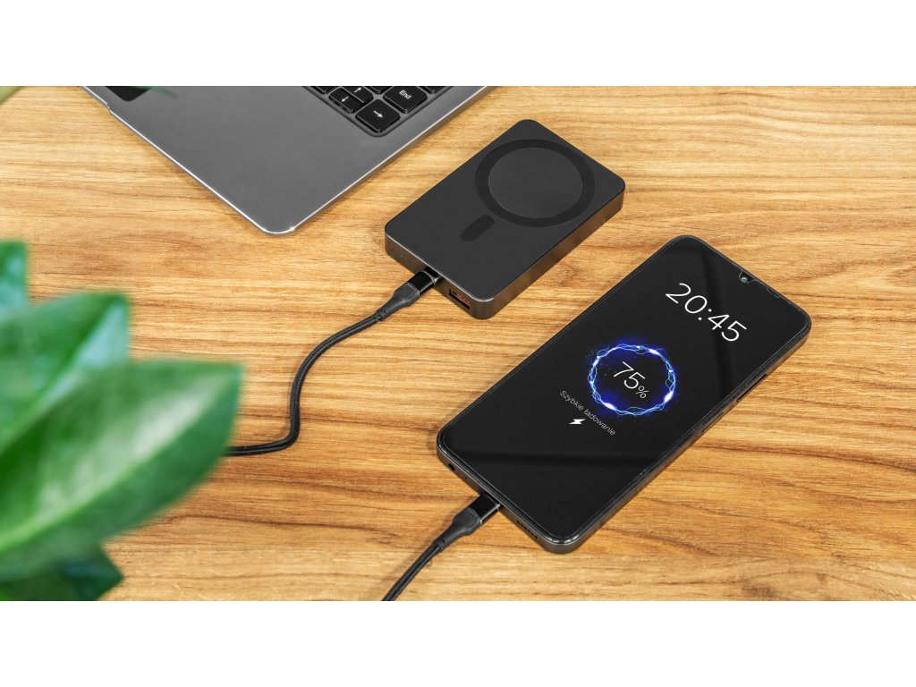 Zahvaljujući kompatibilnosti s tehnologijom MagSafe, power banka Kruger&Matz KM0912 nudi iznimnu udobnost pri punjenju. Magnetsko pričvršćivanje omogućuje precizno prilagođavanje uređaja punjaču, čime se eliminira problem razdvajanja ili pomicanja pametnog telefona tijekom punjenja. Pouzdano pričvršćivanje osigurava da možete bez brige koristiti telefon i u pokretu.