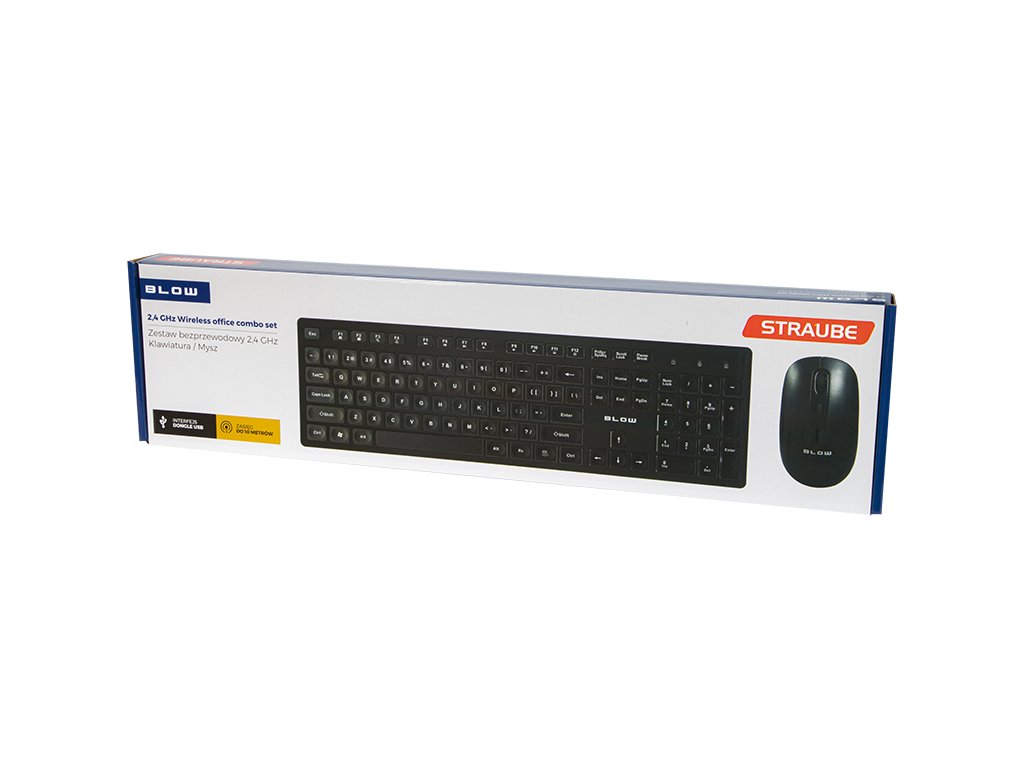 Broj tipki: 3 + kotačićRezolucija: 1000 DPIPovršina protiv klizanja: DANapajanje: 1xAA Set marke BLOW koji se sastoji od bežične tipkovnice i miša. Uređaji se povezuju s prijenosnim ili stolnim računalom putem malog USB prijamnika. Set se odlikuje jednostavnim dizajnom, udobnim radom i jednostavnom upotrebom. Široka primjena Set je kompatibilan s mnogim uređajima i bit će idealan između ostalog za: