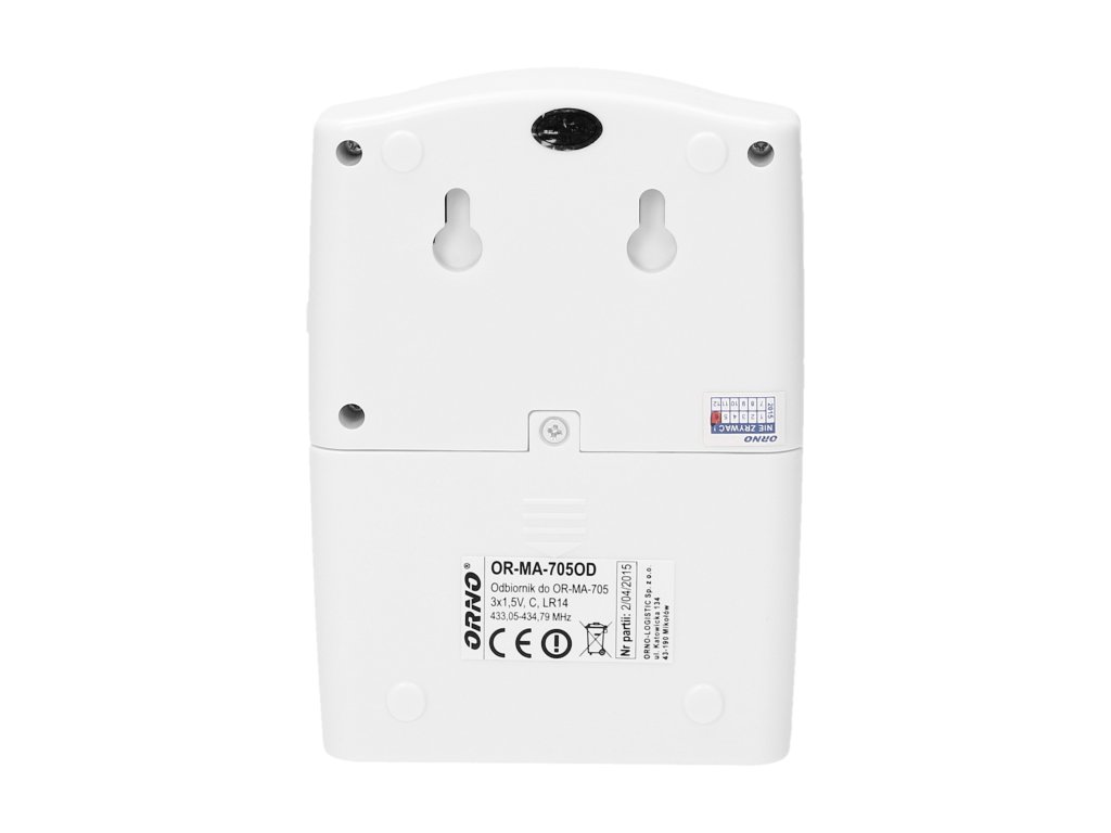 Jačina zvona (db):95 dBTip prijenosa:bežičniNazivni napon:3 x 3LR44Boja:bijelaDimenzije odašiljača - širina (mm):68 mmMogućnost proširenja:neDimenzije odašiljača - visina (mm):105 mmUključujući bateriju:neKontrola glasnoće:neDimenzije - dubina:41 mmDimenzije odašiljača - dubina (mm):42 mmBroj zvonjenja:2Dimenzije - širina:3 x AAA mmDimenzije - visina:128 mmOptička indikacija:DaKut detekcije:45°Stupanj zaštite odašiljača:IP44Maksimalna izlazna snaga odašiljača:< 10 mWDodatni parametri