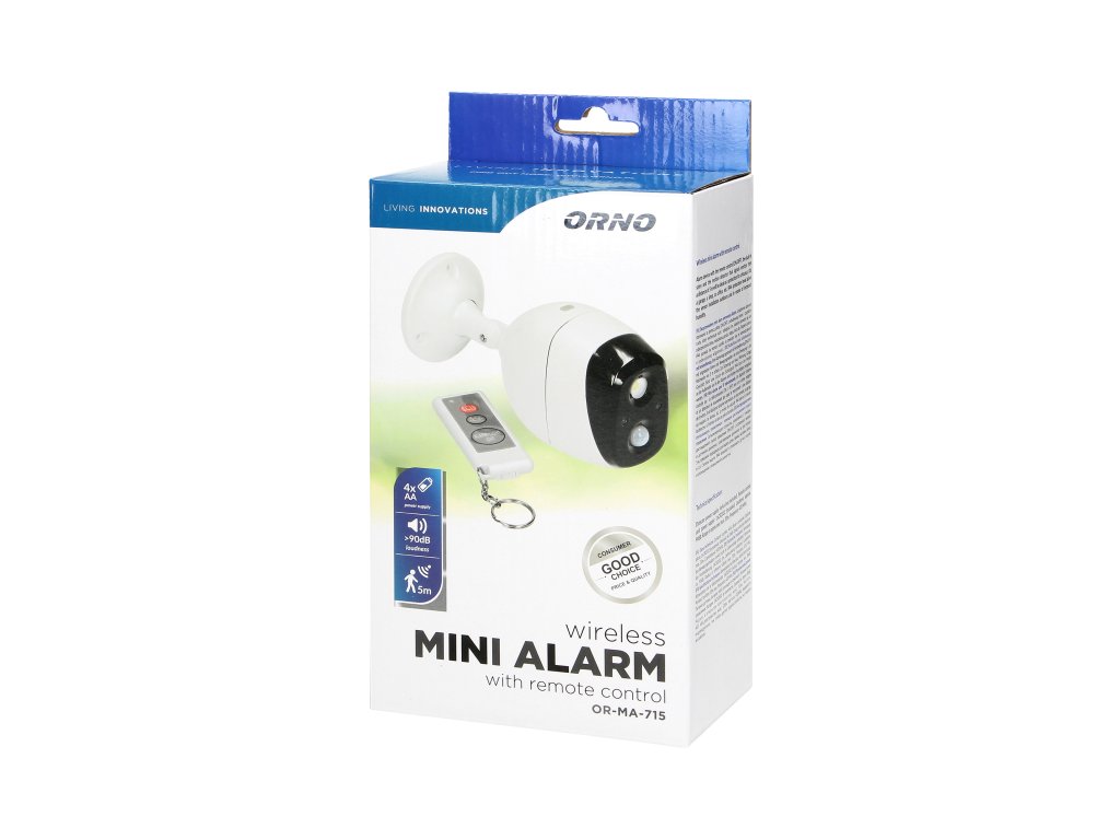 Ovaj bežični mini alarm s PIR senzorom pokreta ima domet detekcije od 5 metara. Ima ugrađenu sirenu i upravlja se daljinski. Pomaže u osiguravanju sigurnosti i omogućuje kontrolu pristupa zaštićenim područjima. Uređaj je opremljen kugličnim zglobom i montažnom rukom koja se može prilagoditi u širokom rasponu. Ovo rješenje omogućuje instalaciju na zid i na strop. Uređaj može raditi u tri načina rada: kao alarm, kao svjetiljka i oboje.