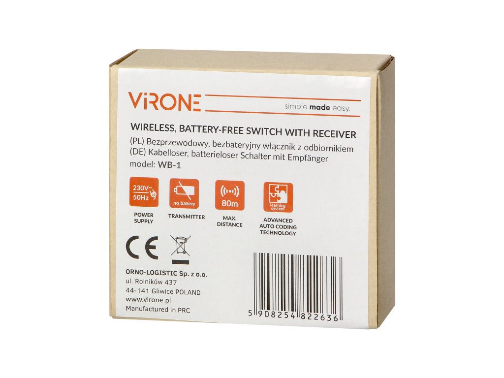 - Ekološki i bez održavanja: Bežični prekidač dizajniran je bez potrebe za baterijama, čime se eliminiraju troškovi njihove zamjene i pridonosi zaštiti okoliša.