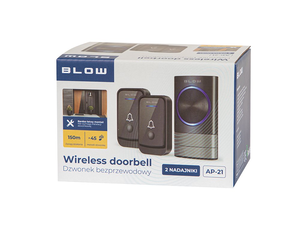 Bežični zvono s mogućnošću samostalnog podešavanja zvuka od 45 dostupnih. Moderan dizajn i univerzalne boje osiguravaju da proizvod pristaje u svaki dom, može biti instaliran bilo gdje - konstrukcija odašiljača otporna je na vlagu! Regulacija glasnoće (4 razine, do 110 dB) omogućuje prilagodbu uvjetima u vašem okruženju.