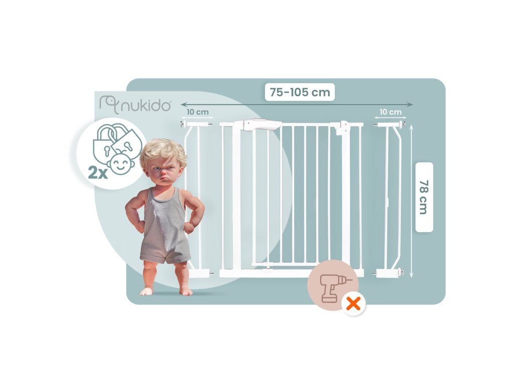 Zabrana za stepenice od Nukido se pričvršćuje bez potrebe bušenja otvora - nećete oštetiti zidove niti dovratnike.