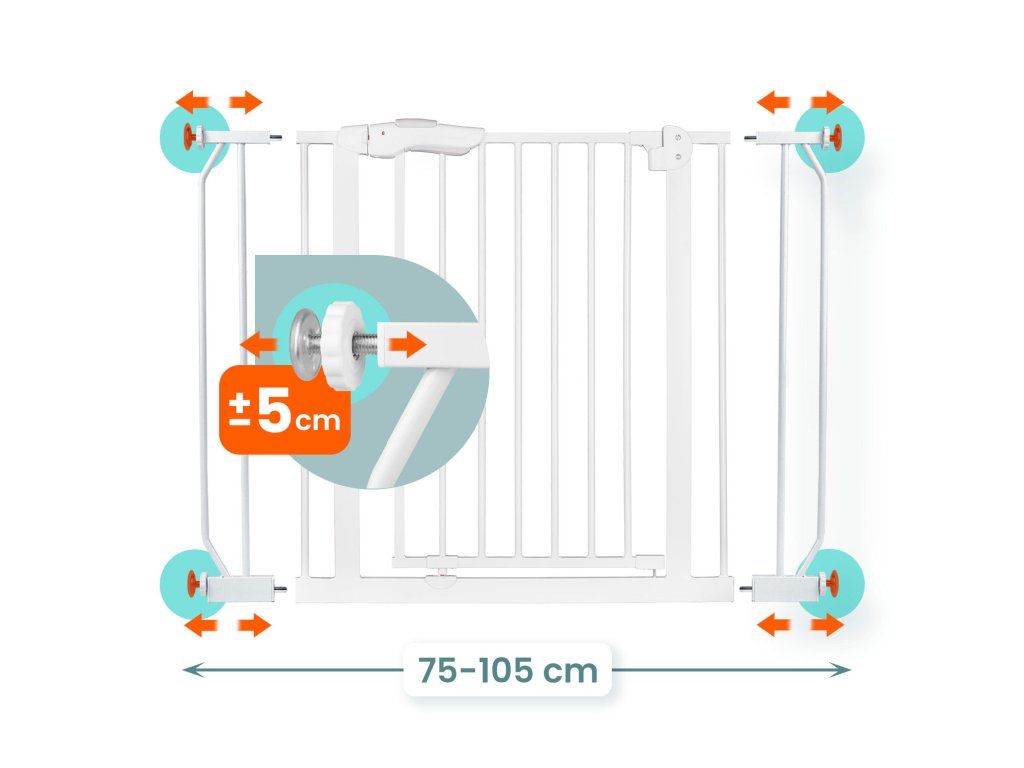 Podesiva širina omogućuje postavljanje u vrata i prolaze od 75 do 105 cm.