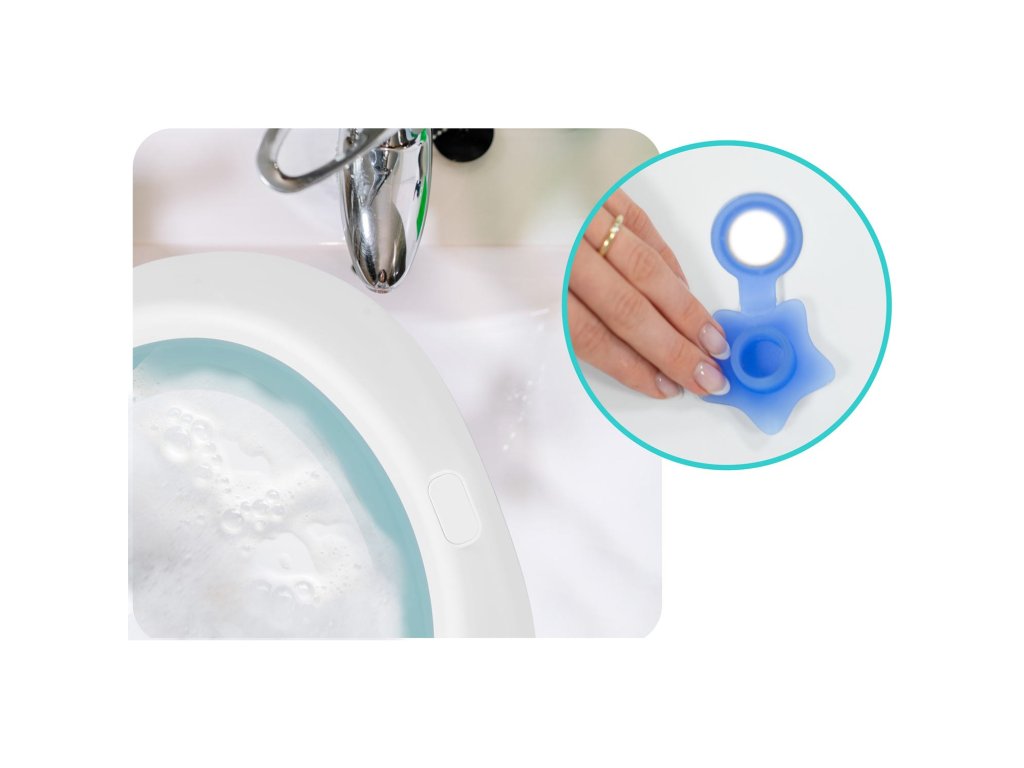 - čep mijenja boju kad je izložen temperaturi vode (iznad 38 stupnjeva).