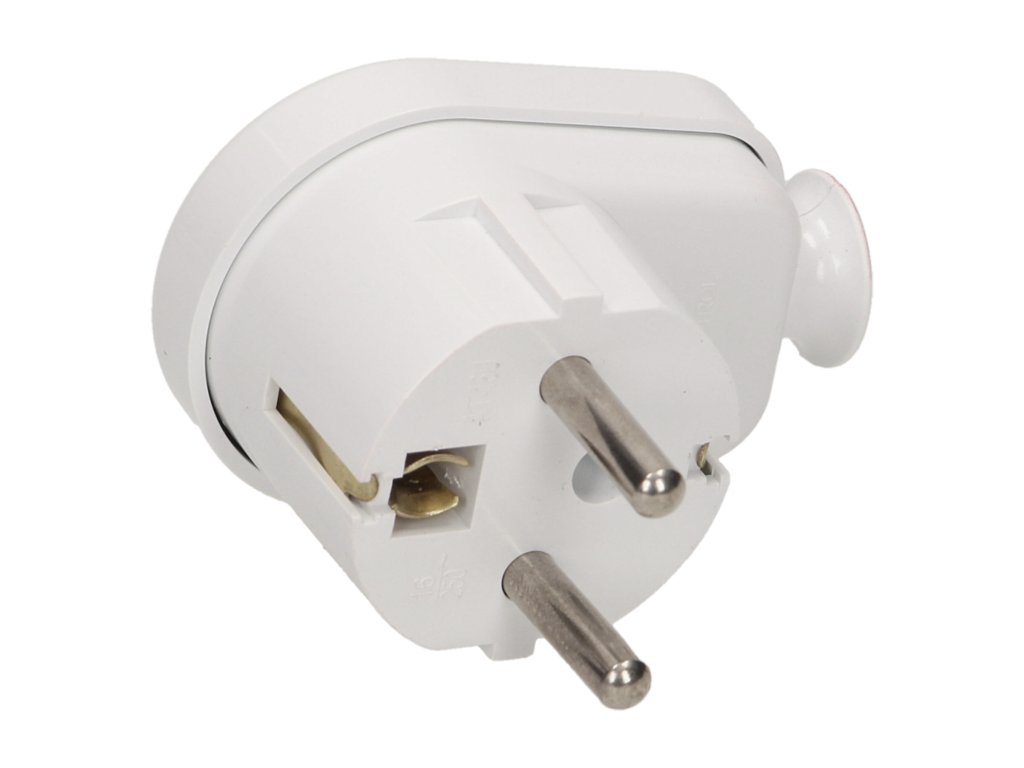 Bijeli kutni utikač 2P 230V prikladan je za razne vrste kućanskih aparata, od televizora preko lampi do kuhinjskih uređaja. - Pristupačno rješenje:
