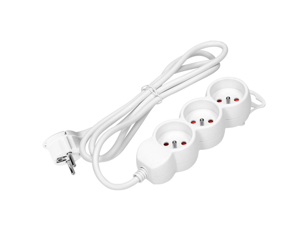 Bijeli produžni kabel s 3 utičnice 1.5m 16A