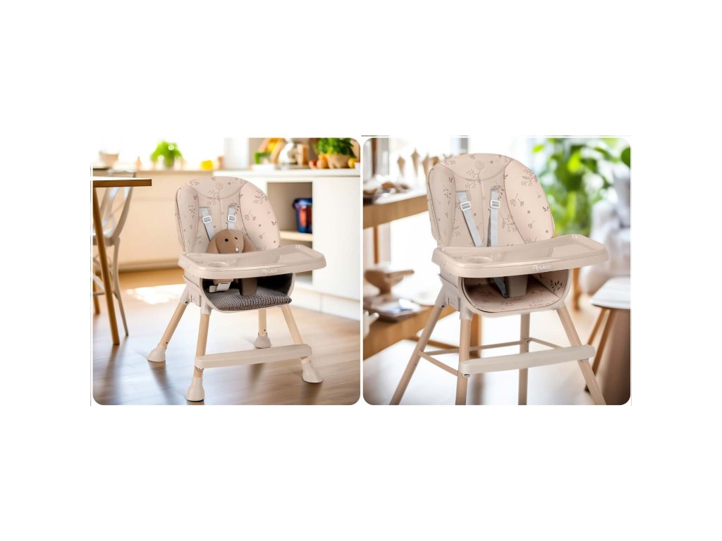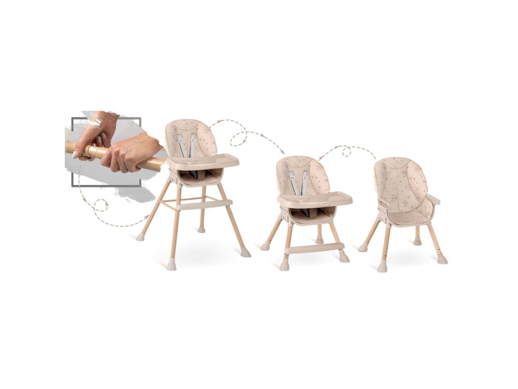 Stolica omogućuje slobodno podešavanje udaljenosti pladnja od djeteta. Može ga se također u potpunosti demontirati u bilo kojem trenutku.