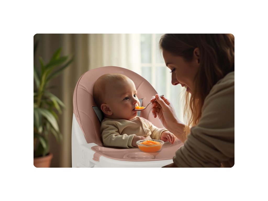 Stolica omogućuje slobodno podešavanje udaljenosti ladice od djeteta. Može se također u bilo kojem trenutku potpuno demontirati.
