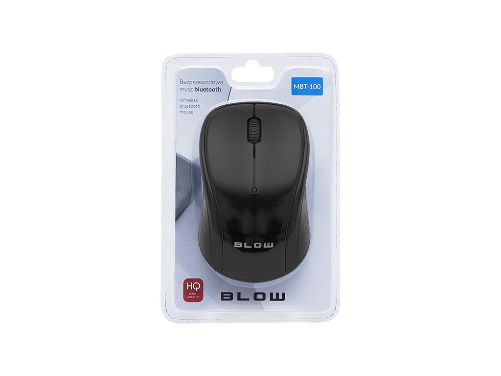 Bežični miš BLOW MBT-100 Bluetooth dizajniran je za rad s većinom operacijskih sustava. Ima ugrađen minijaturni Bluetooth odašiljač koji, nakon uparivanja s računalom (ako vaše računalo nema ugrađeni Bluetooth prijemnik, treba ga kupiti zasebno), osigurava visoku udobnost i stabilnu vezu. Ergonomičan i simetričan oblik jamči udobno korištenje uređaja za dešnjake i ljevake. Korišteni materijali su ugodni na dodir i ne izazivaju brz umor ruku.