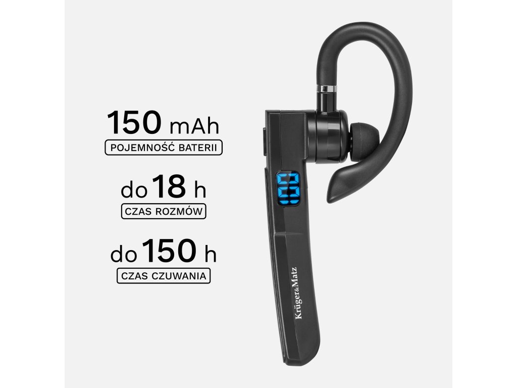 Za duge razgovoreJedna od prednosti verzije Bluetooth 5.2 je smanjenje potrošnje energije. To znači da vam bežični headset Kruger&Matz Traveler K16 omogućuje do 18 sati slobodnog telefoniranja.