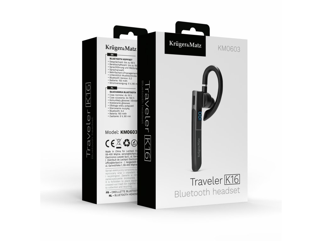 Upoznajte Kruger&Matz Traveler K16 – moderan Bluetooth headset, stvoren s obzirom na one koji žive aktivno i cijene slobodu. To je više od slušalice – to je vaš pouzdan partner u svakodnevnim izazovima, poslu i putovanjima.