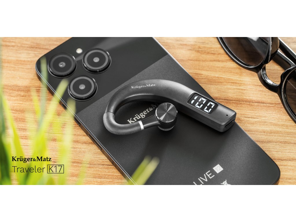Bluetooth slušalica Kruger&Matz Traveler K17 idealno je rješenje za ljude koji cijene udobnost, mobilnost i pouzdanu vezu. Zahvaljujući ergonomskoj i laganoj konstrukciji, idealna je tijekom dugih razgovora i putovanja. Korištenje tehnologije Bluetooth 5.2 osigurava stabilnu vezu i širok domet.