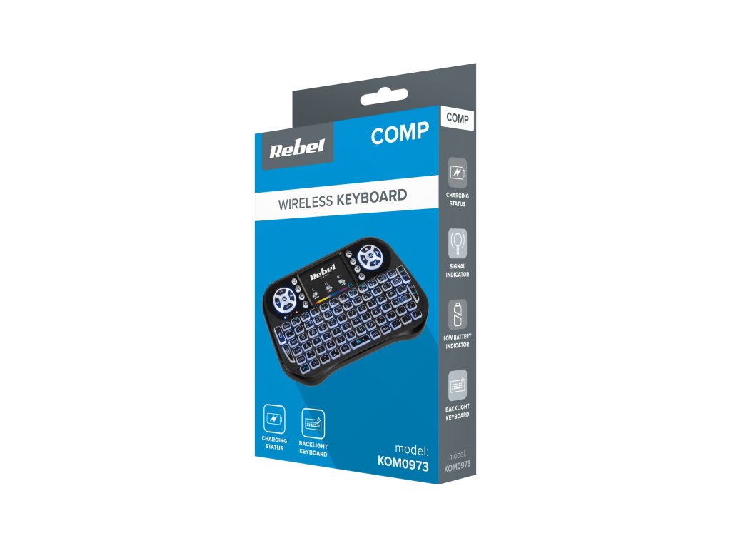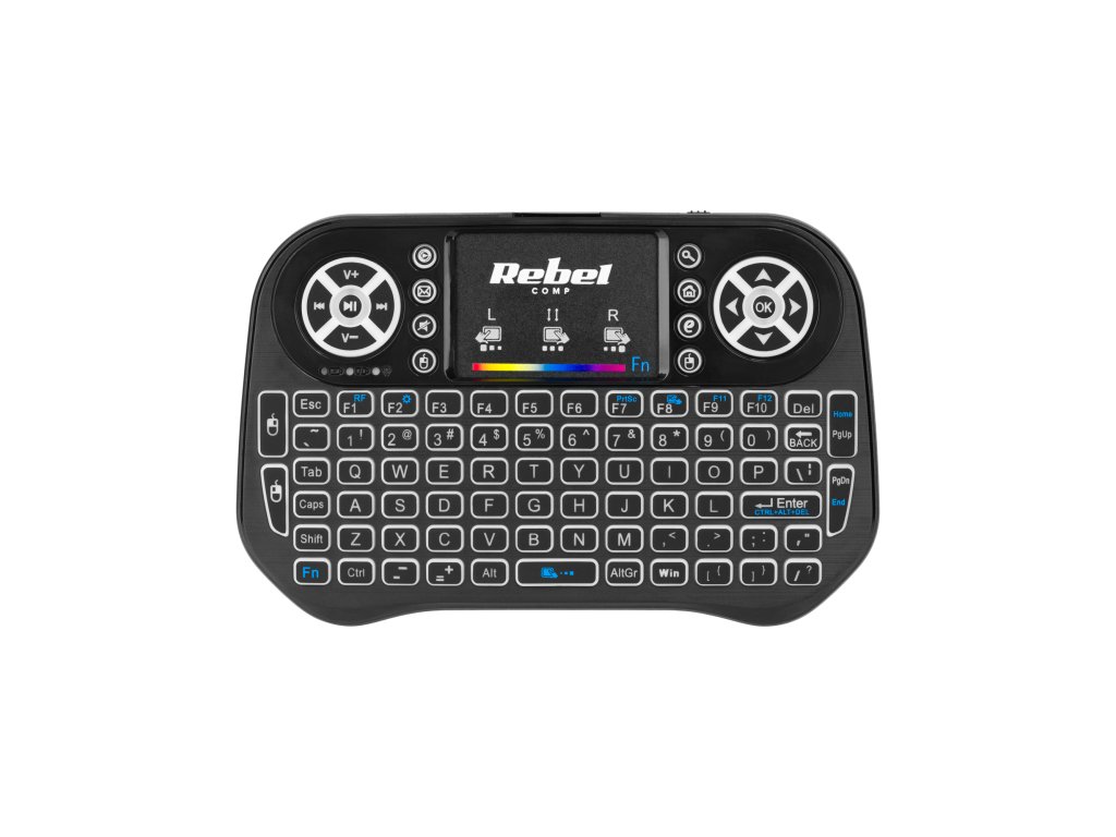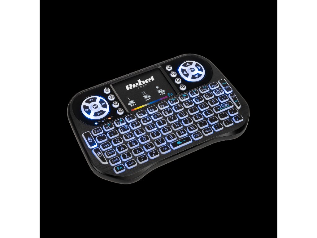 Rebel Mini Q5 je bežična tipkovnica s pozadinskim osvjetljenjem, tako da je možete koristiti i noću. Osim standardnih tipki, uređaj ima i dodatne tipke koje omogućuju brz pristup e-mailu ili kontrolu glasnoće.