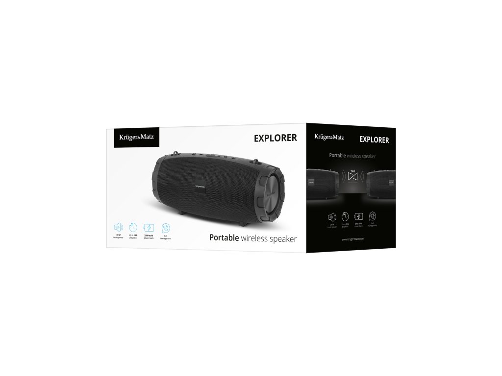 Ne možete se odlučiti, koji Bluetooth zvučnik odabrati Kruger&Matz Explorer je uređaj koji će se pokazati korisnim u svakoj situaciji - idealan za dom, za vanjsku zabavu, a zahvaljujući pridruženom remenu bit će savršen pratitelj i pri šetnjama. Ovaj bežični zvučnik Bluetooth opremljen je s tri drivera - wooferom i dva visokotonca - za reprodukciju glazbe s frekvencijskim odzivom od 60 Hz do 20 kHz. Tehnologija Bluetooth 5.0 korištena u uređaju Explorer jamči stabilnu vezu i nisku potrošnju energije.