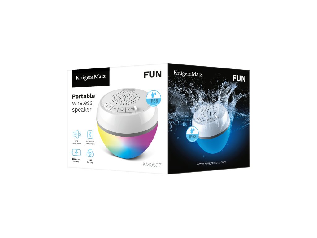 Kruger&Matz Fun je Bluetooth zvučnik s dizajnom otpornim na prskanje vode. Zahvaljujući tomu, omogućit će vam sjajnu zabavu ne samo kod kuće, već i kod bazena, na plaži, pa čak i na kišnom danu.