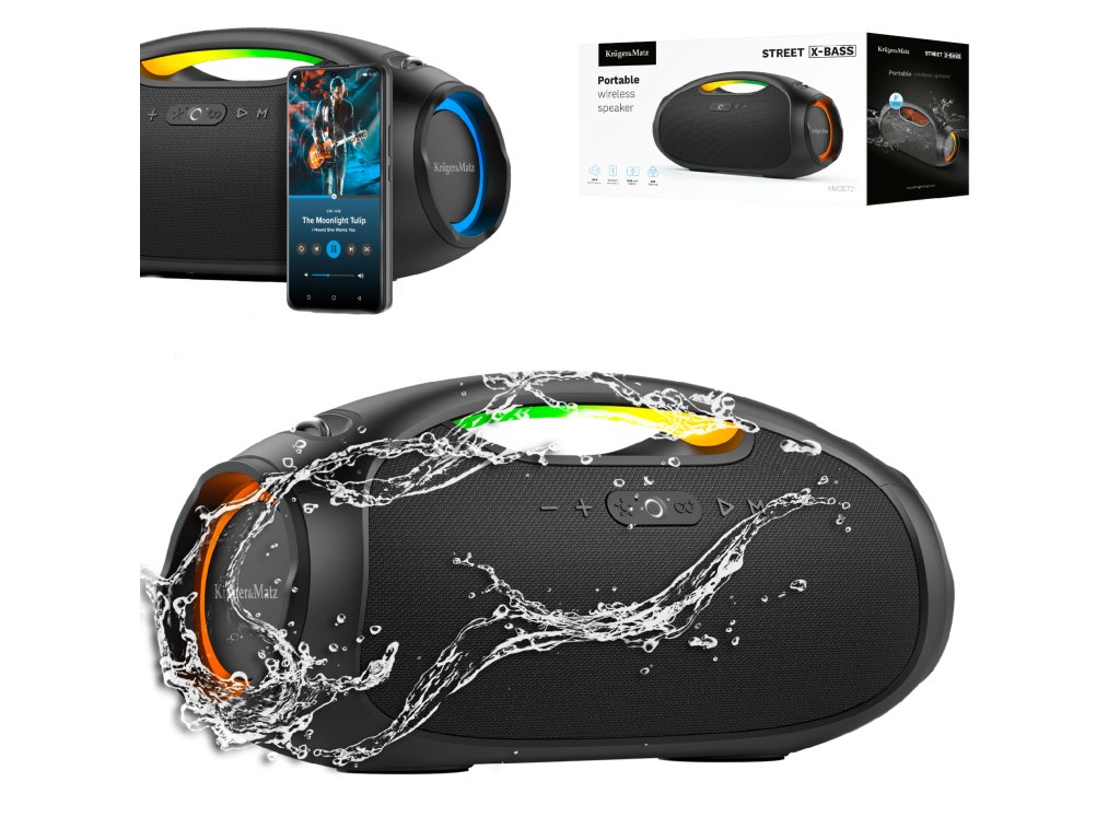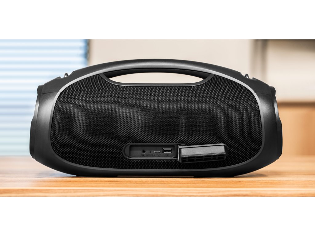osvjetljenje Funkcija više veza Punjenje vanjskih uređaja EQ načini: za unutarnje i vanjsko slušanje Ulazi /izlazi: USB 2.0 port AUX ulaz (3,5 mm priključak) USB-C priključak za punjenje Vrijeme rada pri reprodukciji glazbe: do 8 sati (50% glasnoće) Napajanje: 5 V / 2 A Baterija: 7,4 V; 5400 mAh Dimenzije: 377 x 180 x 157 mm Težina: 2,8 kg Uključuje: USB-C kabel, 3,5 mm AUX kabel
