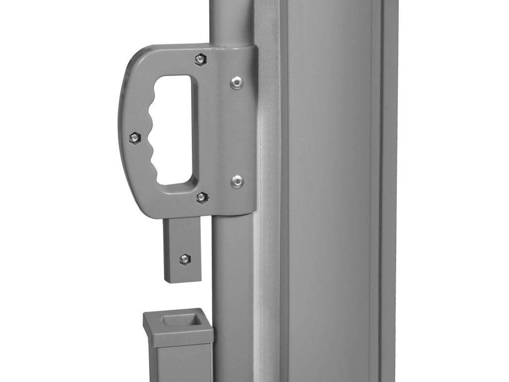 - Dokončovacie prvky z plastu (prekrytie na vrchnej strane stĺpika, krytky na oboch stranách textilného pásu, rukoväť na páse)