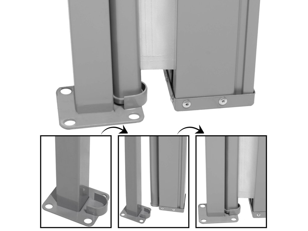 - Oceľová kazeta a stĺpik, hliníkový pásik na okraji látky