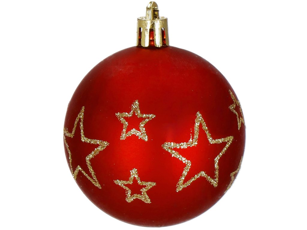 - 6x mat kugle - crvene + zlatne blještave zvjezdice - 6 cm