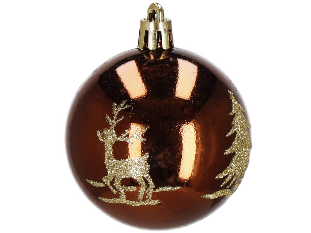 - 6x sjajne kugle - smeđe + zlatni blještavi uzorci - 6 cm
