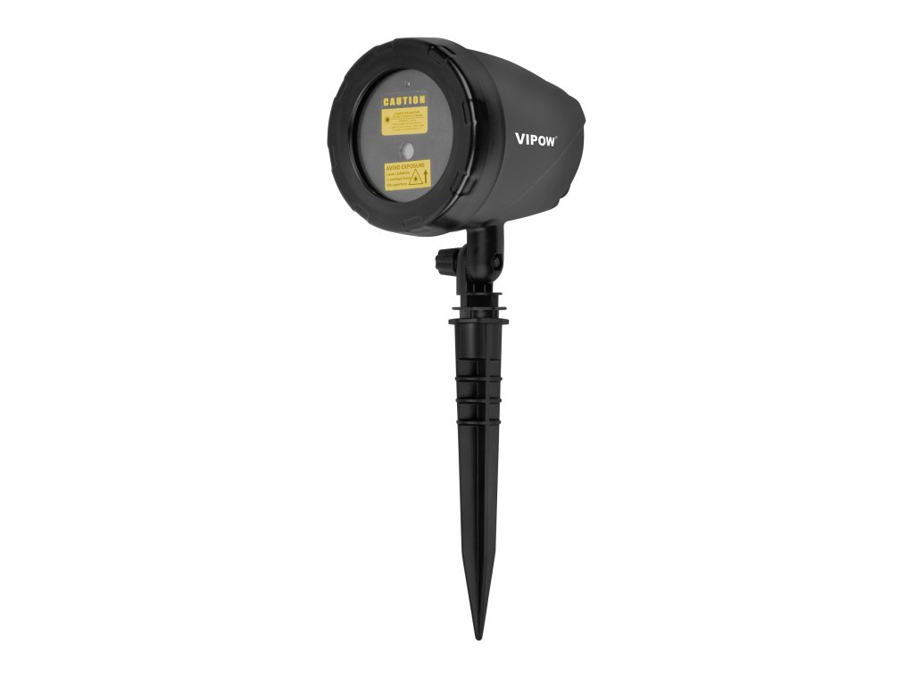 Laserski projektor Vipow savršena je dekoracija za vaš dom. Uređaj ima 9 različitih načina osvjetljenja. Koristi zrake svjetla u zelenoj i crvenoj boji, koje su ugodne za oči. Domet projektora je 30 metara, a maksimalna veličina osvijetljene površine iznosi 280 m2. Dva tipa baze - kolac i stativ - osiguravaju stabilnost uređaja bez obzira na to hoće li biti postavljen u unutarnjem ili vanjskom prostoru. Projektor također ima senzor koji ga automatski isključuje pri dnevnom svjetlu.