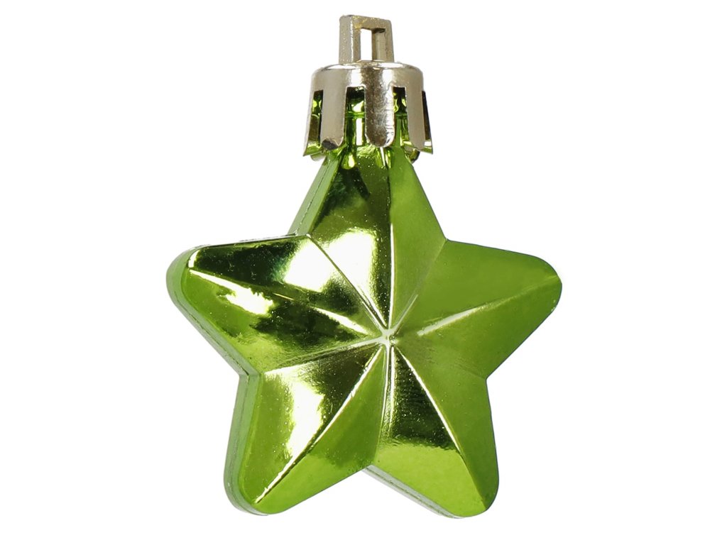 - 6 x bijela šljokičasta mala kuglica - 4 x 2,7 cm 5 x bijela srca - 4 x 3 cm 6 x zelena zvijezda - 4,5 x 3,5 cm 6 x zelena dekorativna mala kuglica - 6 x 2,1 cm