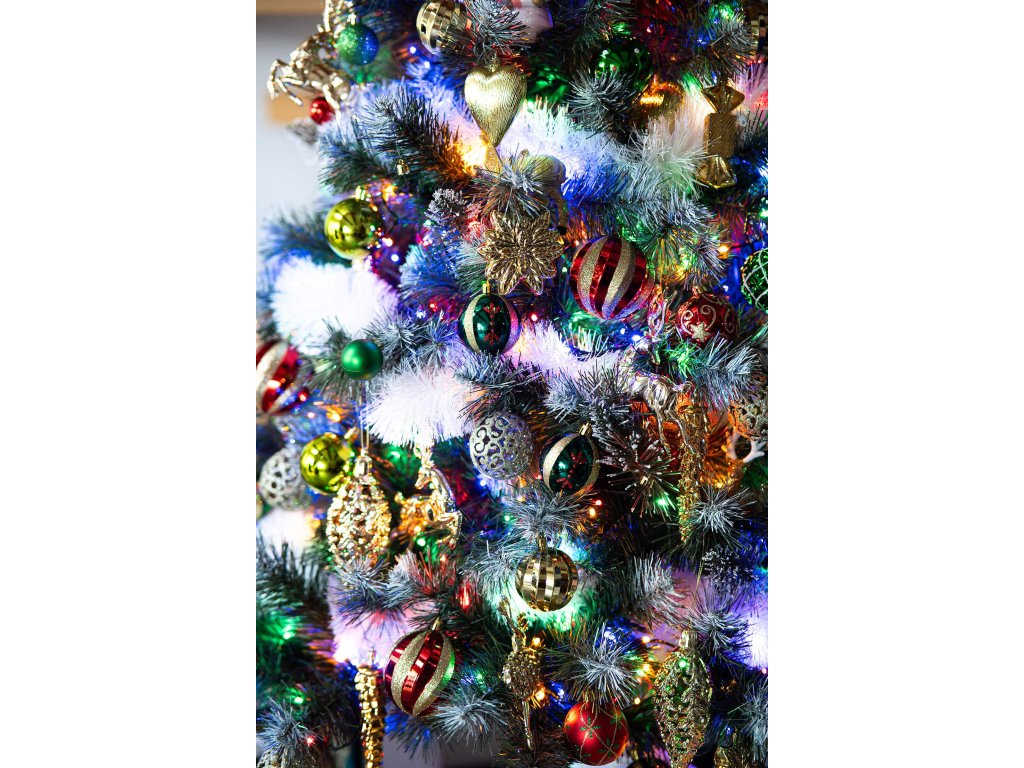 - Boja iglica: zelena + vrhovi grana s dvije vrste premaza - bijela i srebrno-sjajna.