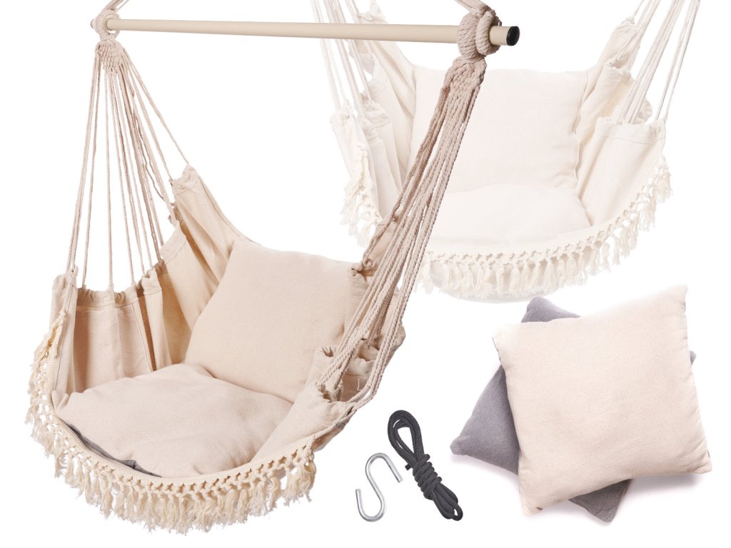 Brazílske hojdacie kreslo s vankúšmi ecru strapce