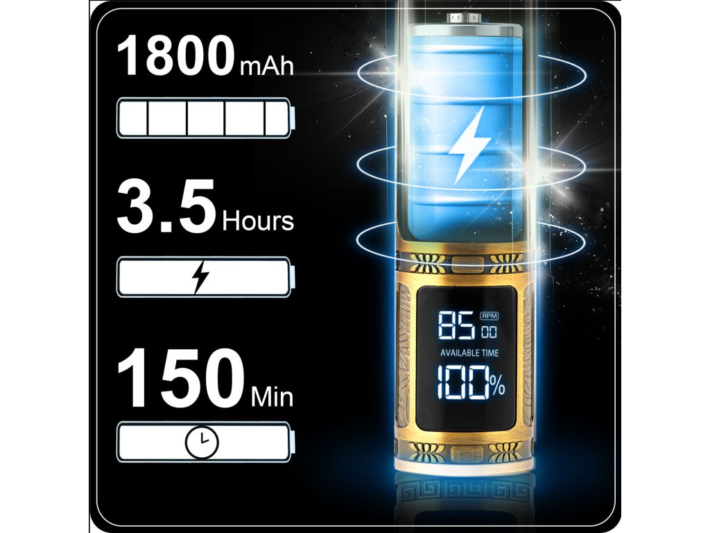 - Do 2,5 sati rada — Li-Ion baterija kapaciteta 1800 mAh, osigurava dug i nesmetan rad bez prekida za punjenje.