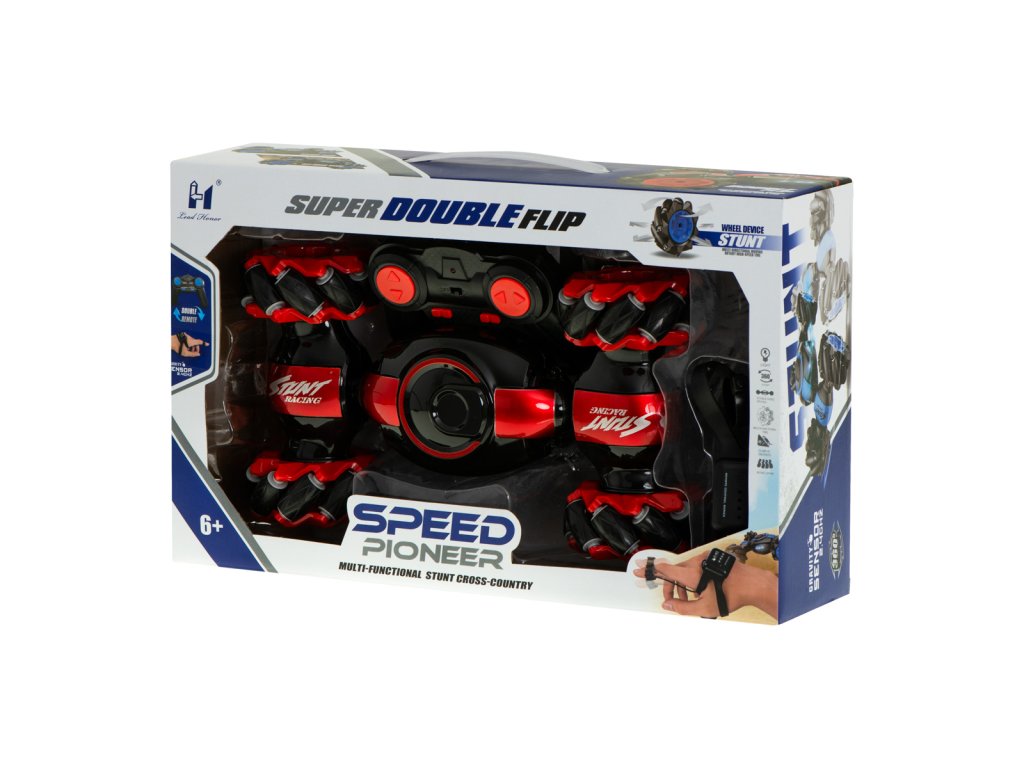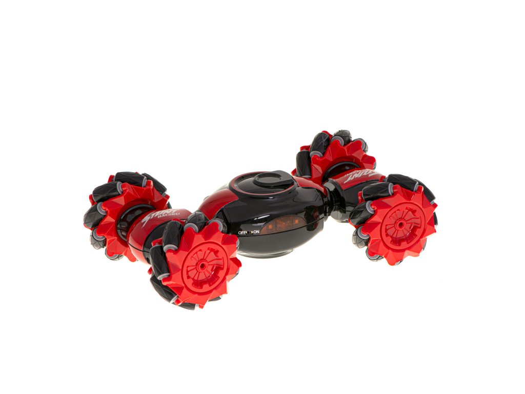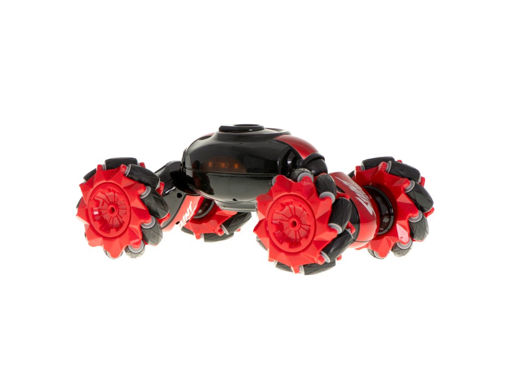 Auto na daljinsko upravljanje koje vozi u svim smjerovima! Isporučuje se s dva daljinska upravljača: tradicionalnim joystickom i pravim hitom! - daljinsko upravljanje GRAVITACIJSKI SENZOR. Omogućuje upravljanje vozilom pomoću gesta. Oba daljinska upravljača rade na frekvenciji 2,4 GHZ.