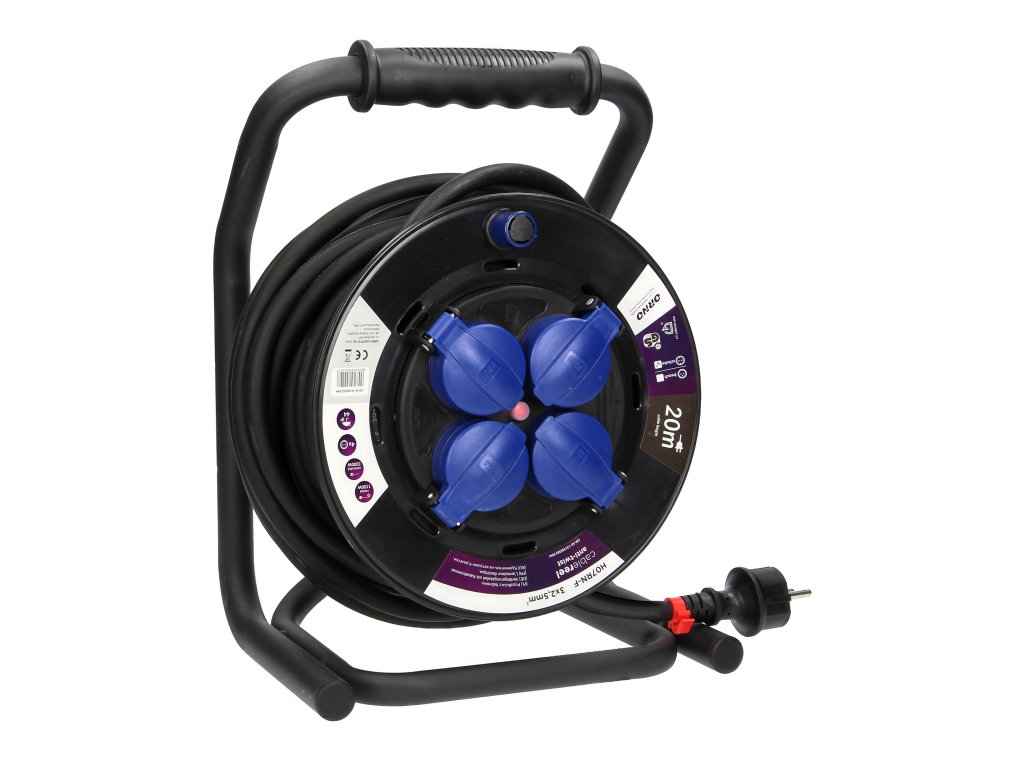 Produžni kabel bubanj 20m gumeni, 4 utičnice IP44