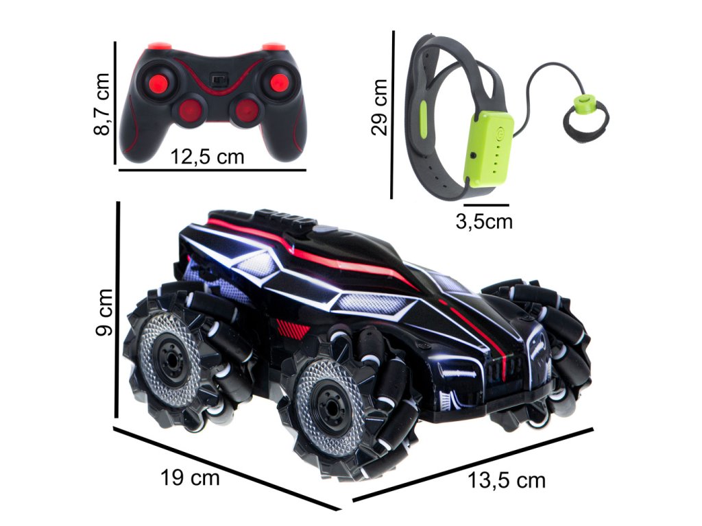 Špeciálny ručný ovládač pre nezabudnuteľnú zábavu. Aby sa autíčko rozbehlo, musíte pohybovať rukou správnym smerom. Ovládanie vozidla týmto spôsobom je zaujímavou variáciou, ktorá určite zaručí fantastickú hrateľnosť.