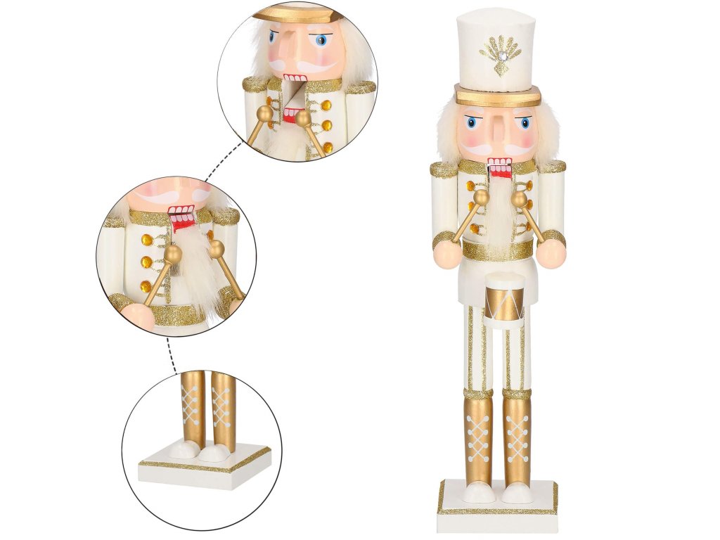 - Elementi konstrukcije: bijela kapa sa zlatnim štitnikom, bijela odjeća sa zlatnim ukrasima, bijele hlače, zlatne cipele, lice s očima i brkovima, istaknuti nos, sijeda kosa i brada, otvor u ustima koji se otvara podizanjem poluge na stražnjoj strani, u rukama štapići za sviranje bubnja
