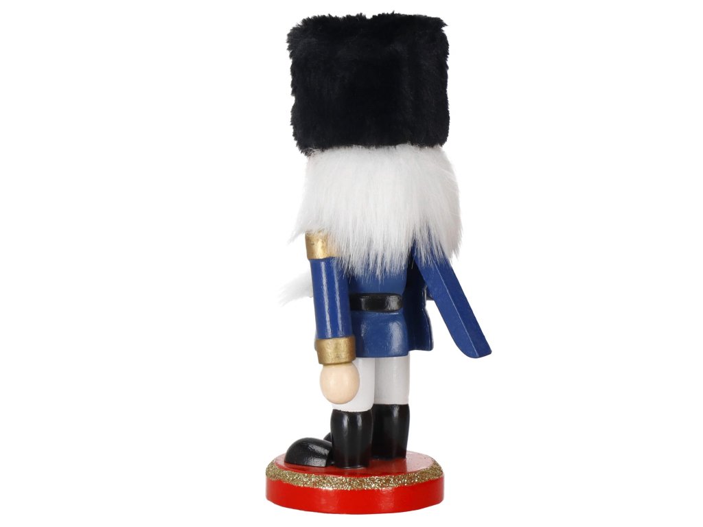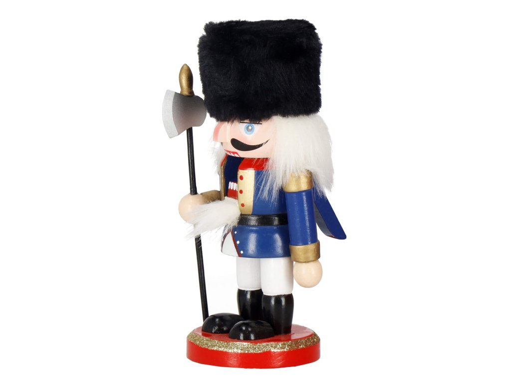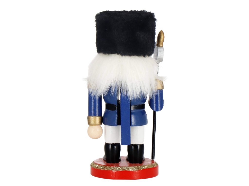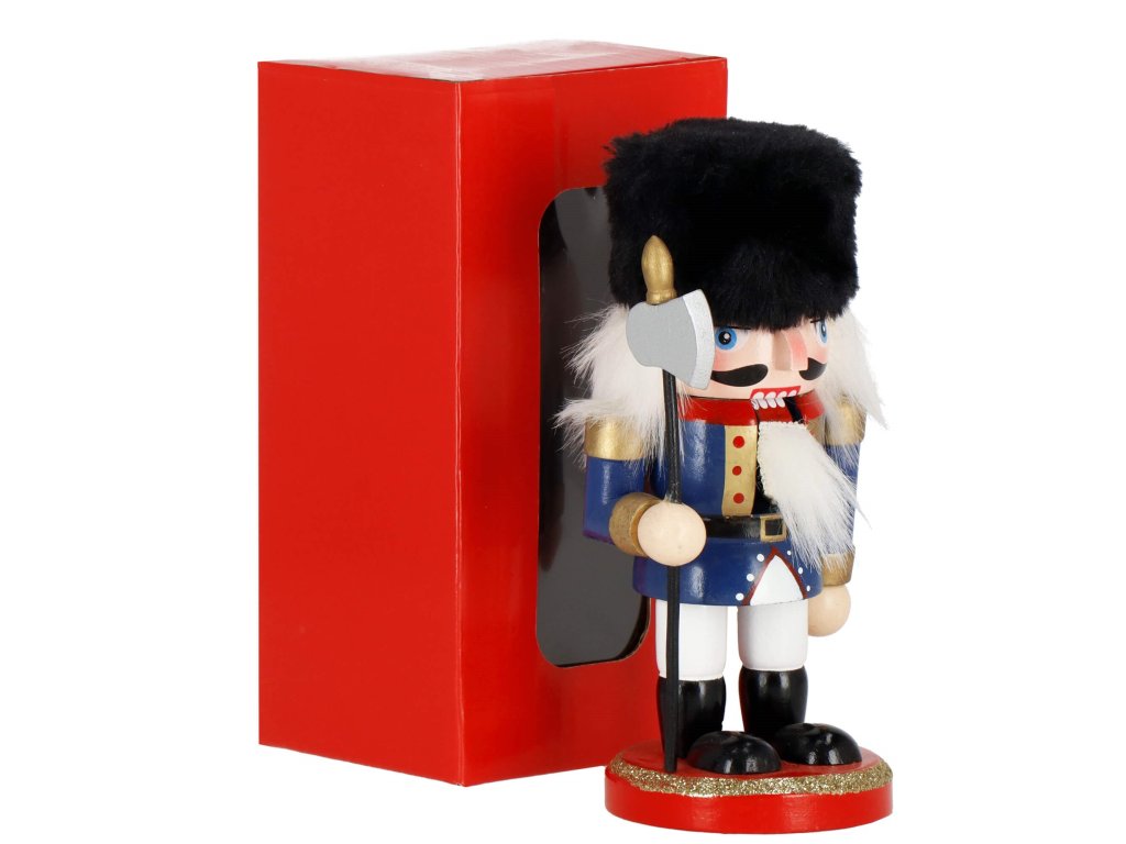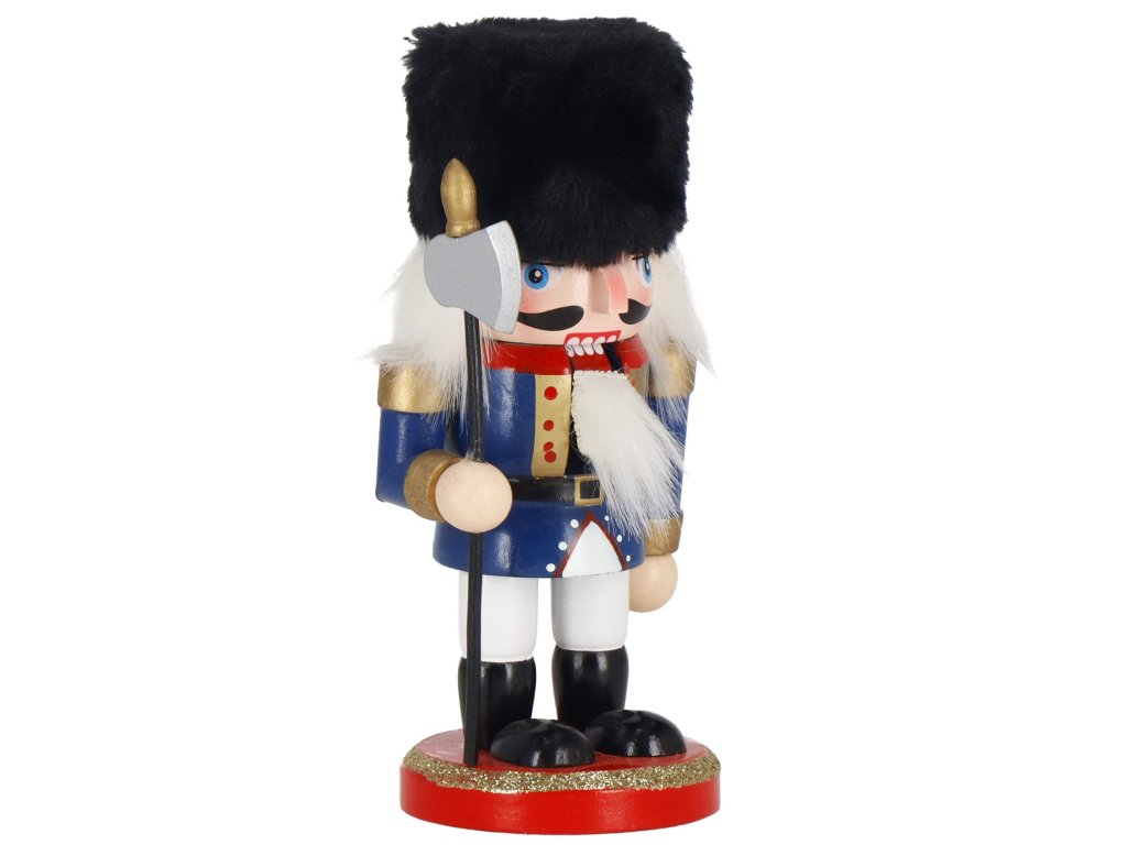 - Elementi konstrukcije: kapa s crnim krznenim obrubom, tamnoplava odjeća, crne cipele, lice s očima i brkovima, istaknut nos, sijeda kosa i brada, otvor za orahe u ustima otvaran podizanjem poluge straga, sjekira u ruci