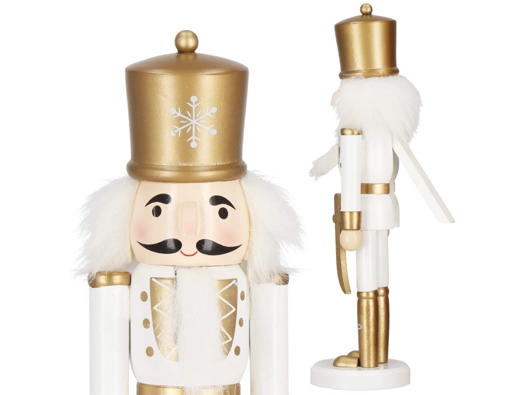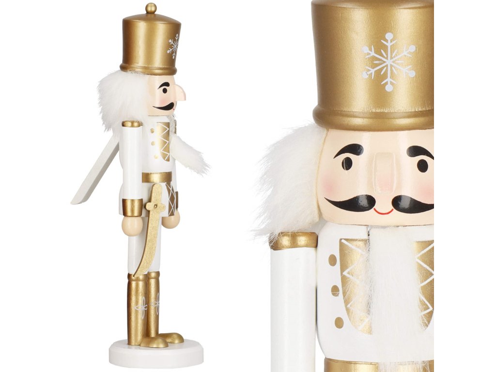- Elementi konstrukcije: zlatna kapa, bijelo-zlatna odjeća, zlatne cipele, lice s očima i brkovima, istaknut nos, siva kosa i brada, otvor za orahe u ustima otvara se podizanjem poluge straga, zlatni mač