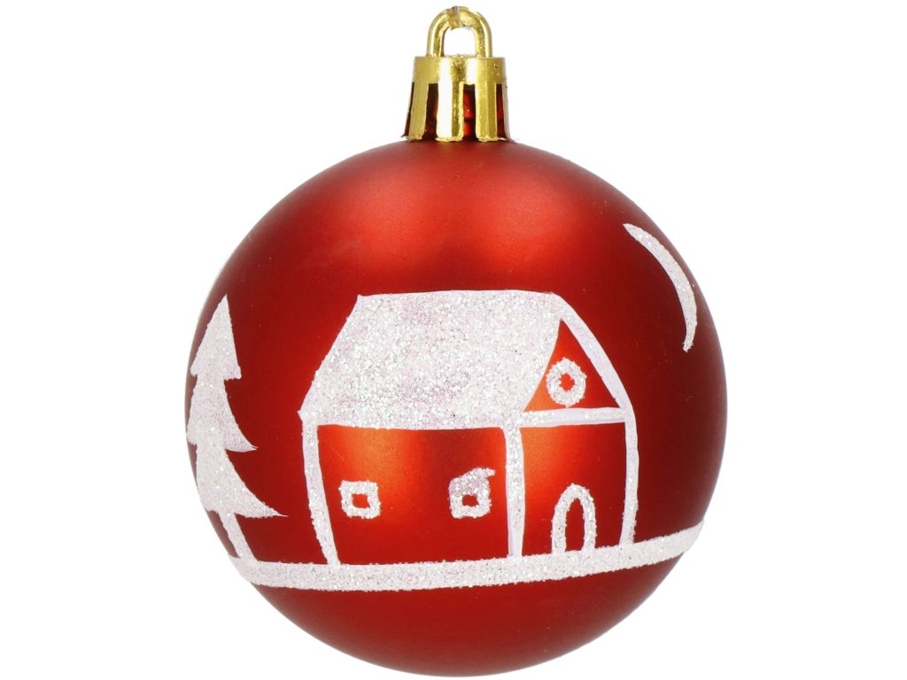 - 2x mat kugla - crvena - svjetlucavi krajolik - 6 cm
