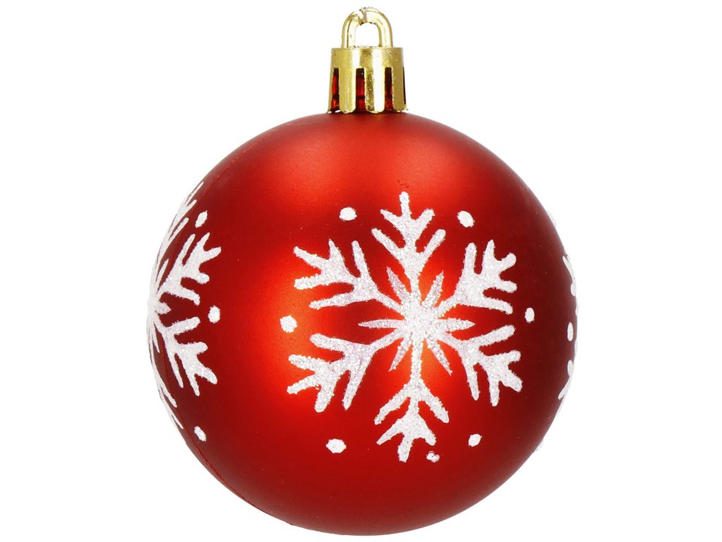 - 2x mat kugla - crvena - bijele svjetlucave pahulje - 6 cm