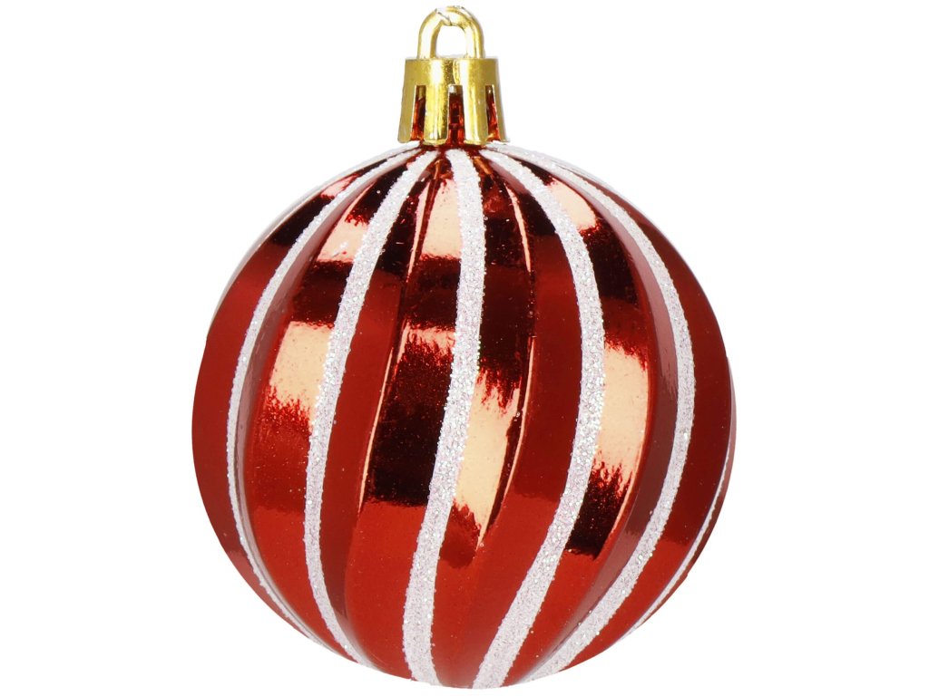 - 2x strukturirana kugla, sjajna - crvena - svjetlucave crtice - 6 cm