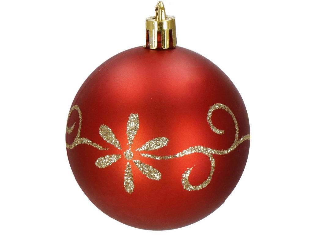 - 6x matirana kuglica - crvena + zlatni sjajni ukrasi - 6 cm