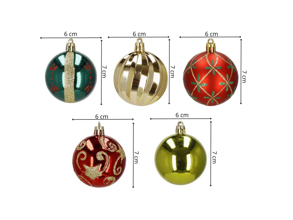 - 6x sjajna kuglica - smaragdna + zlatni i crveni sjaj - 6 cm