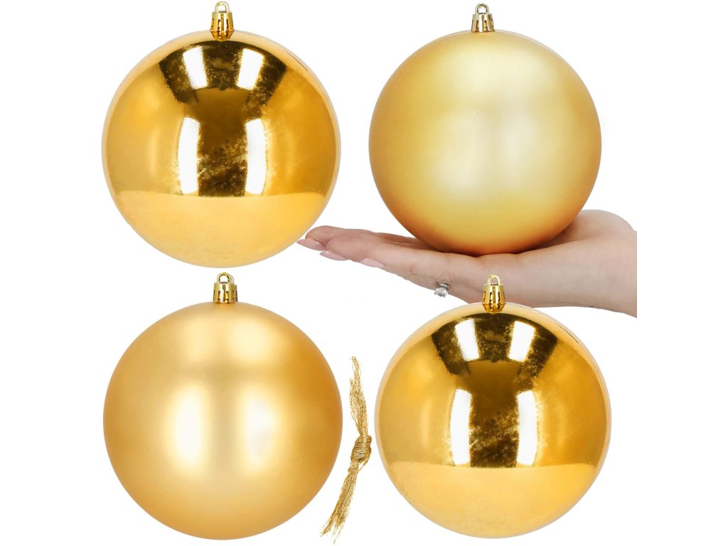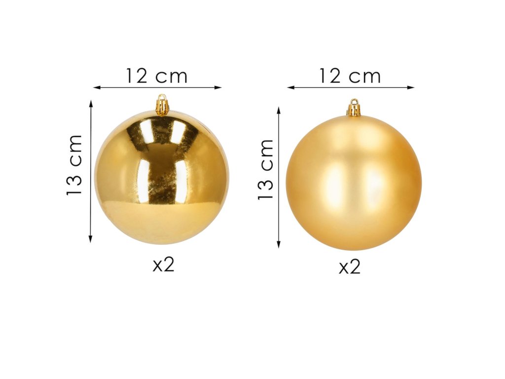 - 2x sjajna kugla - zlatna - 12 cm