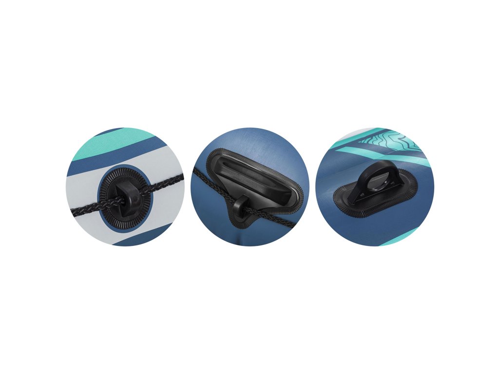 Izrađen od izdržljivog i otpornog PVC-a, ima tri neovisne zračne komore. Oko kajaka je dodatno pričvršćeno spasilačko uže.