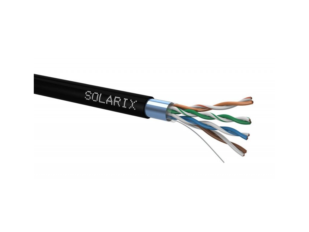 Instalacijski kabel s oznakom SXKD-5E-FTP-PE je vanjski zaštićeni kabel CAT5E s polietilenskim omotačem. Kabel je namijenjen za vanjske instalacije, gdje obični podatkovni kabel s PVC ili LSOH omotačem ne pruža dovoljnu zaštitu od utjecaja vanjskog okruženja. Zajedno s ostalim komponentama sustava strukturirane kabelske mreže Solarix stvara rješenje koje jamči dugovječnost, maksimalne performanse i neometan rad računalne mreže. Ovi kablovi bez problema ispunjavaju zahtjeve definirane međunarodnim standardima ANSI / TIA 568, ISO / IEC 11801 i EN 50173 za kategoriju 5E i klasu vođenja CLASS D.