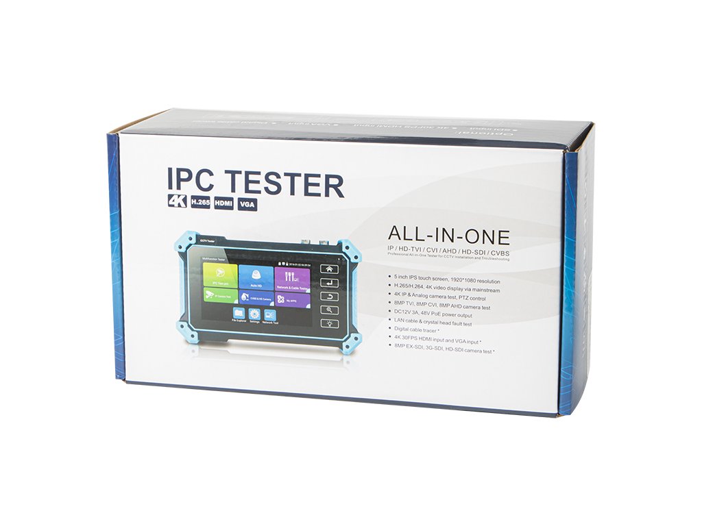 5-inčni IPS tester za kamere s zaslonom na dodir dizajniran je za održavanje i instalaciju analognih kamera (CVI, TVI, CVBS, AHD) i IP kamera. Razlučivost zaslona je 1920x1080, što omogućuje prikaz FHD kamera u visokoj razlučivosti. Uređaj podržava mnoge protokole kao što su ONVIF ili PTZ. Od sada vam je dovoljan jedan uređaj za sve - poboljšat će vaše radne uvjete i povećati vašu produktivnost.Podrška za razlučivosti