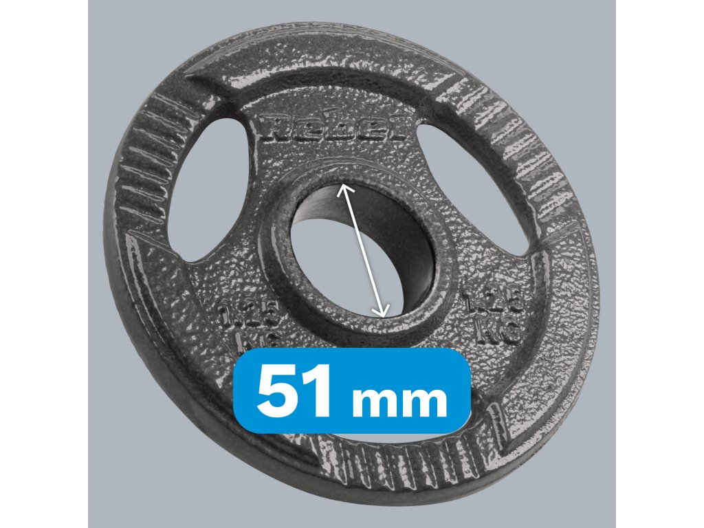 Čelični olimpijski utezi set 4x1.25kg, otvor 51mm, ploča s rukohvatima, REBEL ACTIVE